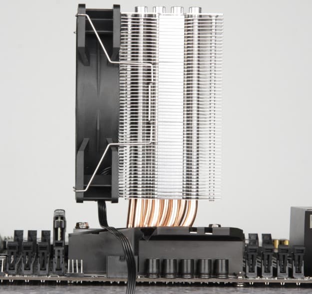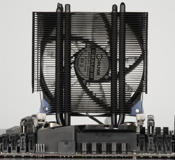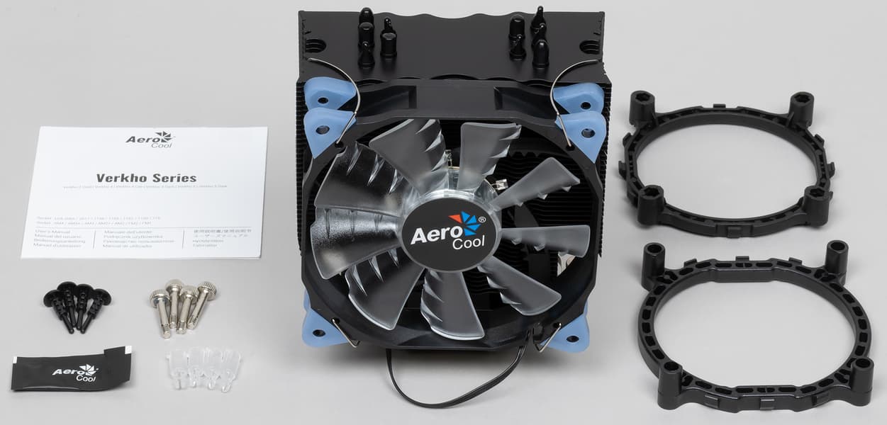 Отметим черное матовое покрытие радиатора у AeroCool, что, по идее, немного улучшает теплоотдачу, и никелированные тепловые трубки у Thermalright, а также то, что у Thermalright радиатор заметно меньше, чем у остальных трех кулеров.