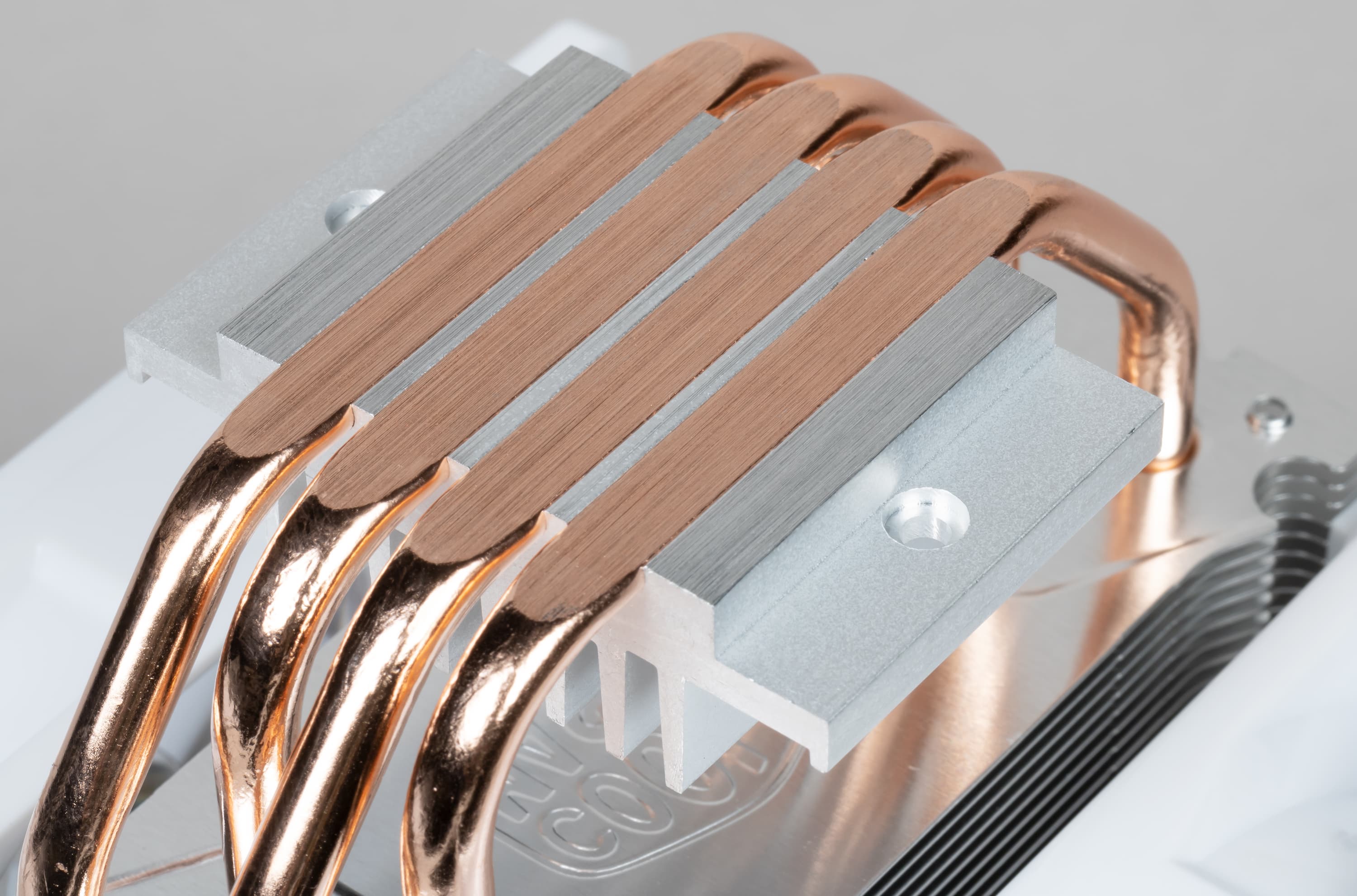 Подошвы у Cooler Master, AeroCool и be quiet! сошлифованы, но не отполированы, при этом у Cooler Master и be quiet! подошва практически идеально плоская, тогда как у AeroCool обнаруживается незначительная выпуклость к центру. Подошва у Thermalright выглядит как недоделанная заготовка — такое впечатление, что трубки просто слегка обстучали молотком, ни о какой обработанной поверхности и речи быть не может.