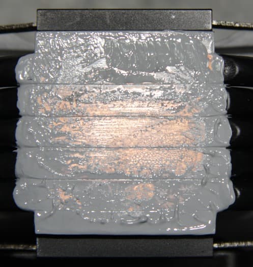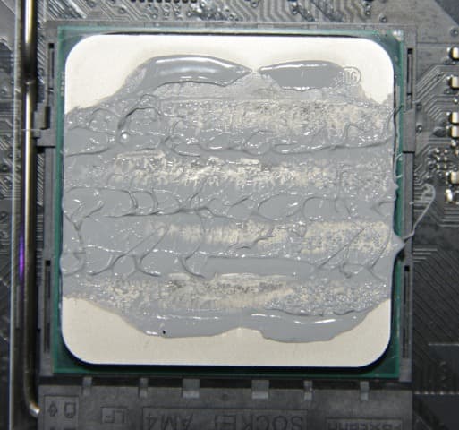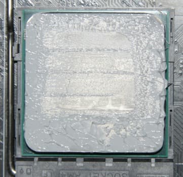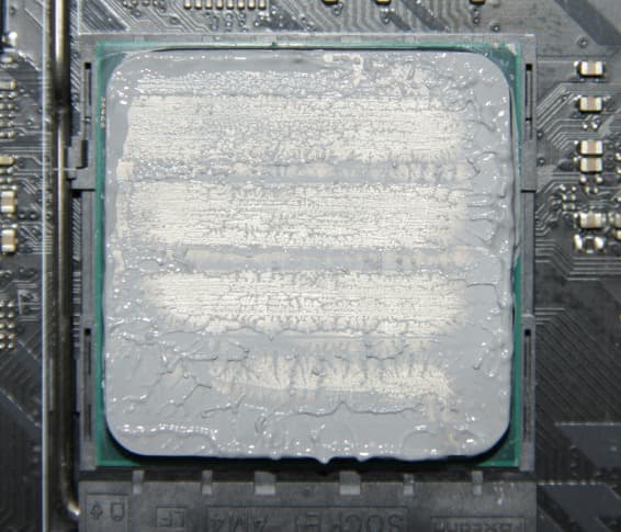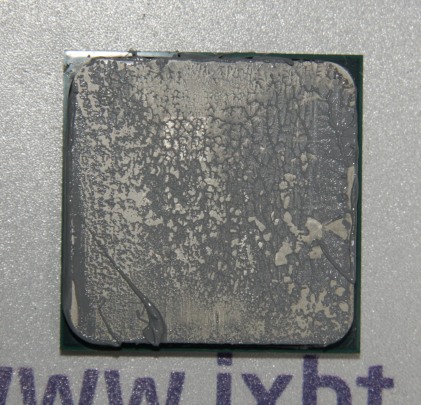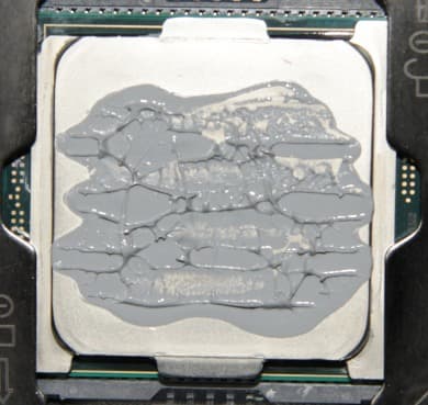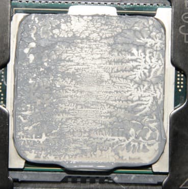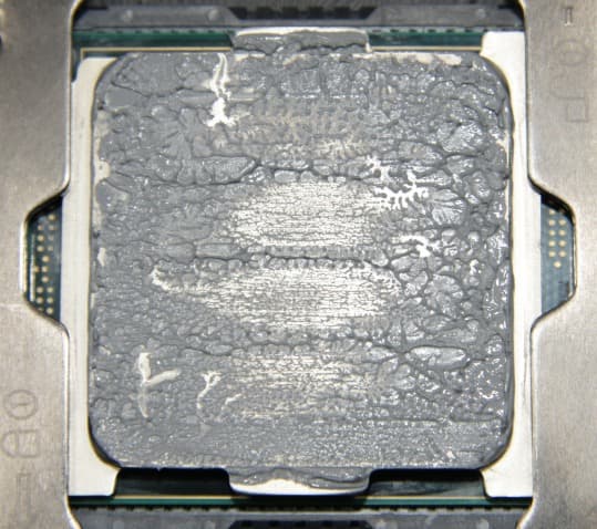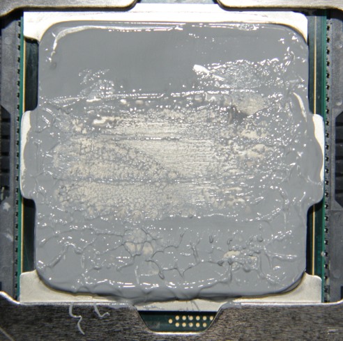 В наших тестах использовалась качественная термопаста другого производителя. Забегая вперед, продемонстрируем распределение термопасты после завершения тестов. На процессоре Intel Core i9-7980XE: