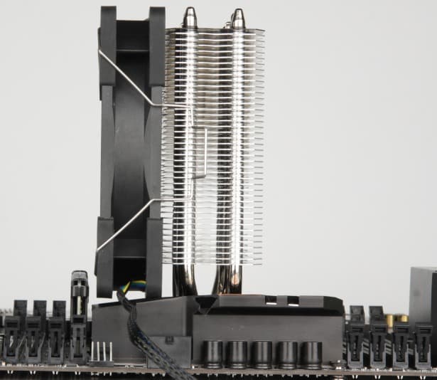 | Тип системы охлаждения | для процессора воздушная башенного типа с активным обдувом вынесенного на медных тепловых трубках прямого контакта радиатора с пластинами из алюминия | |||