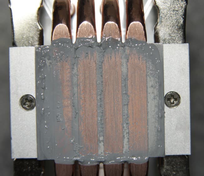В случае кулера be quiet! слой термопасты имеет очень небольшую толщину по всей площади крышки процессора.