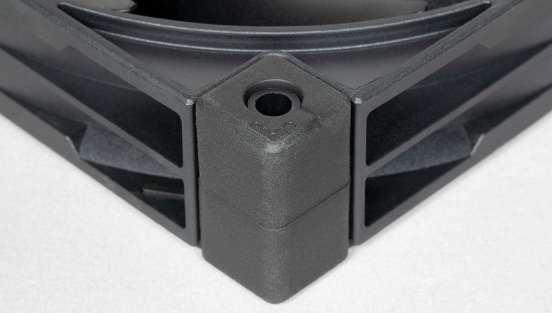 В несжатом состоянии они выступают примерно на 1 мм относительно плоскости рамки. По замыслу разработчиков, это должно обеспечивать виброразвязку вентилятора от места крепления. Однако если прикинуть соотношение массы вентилятора к жесткости накладок, то становится понятно, что резонансная частота конструкции получается очень высокой, то есть практически никакой виброразвязки быть не может. К тому же крепежные скобки фиксируются непосредственно за рамку вентилятора и за пластины радиатора, что не оставляет никакого шанса на хоть какую-то виброразвязку.