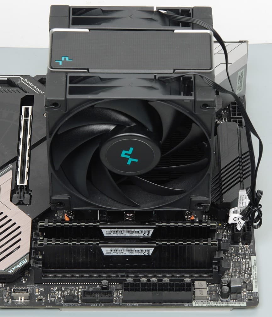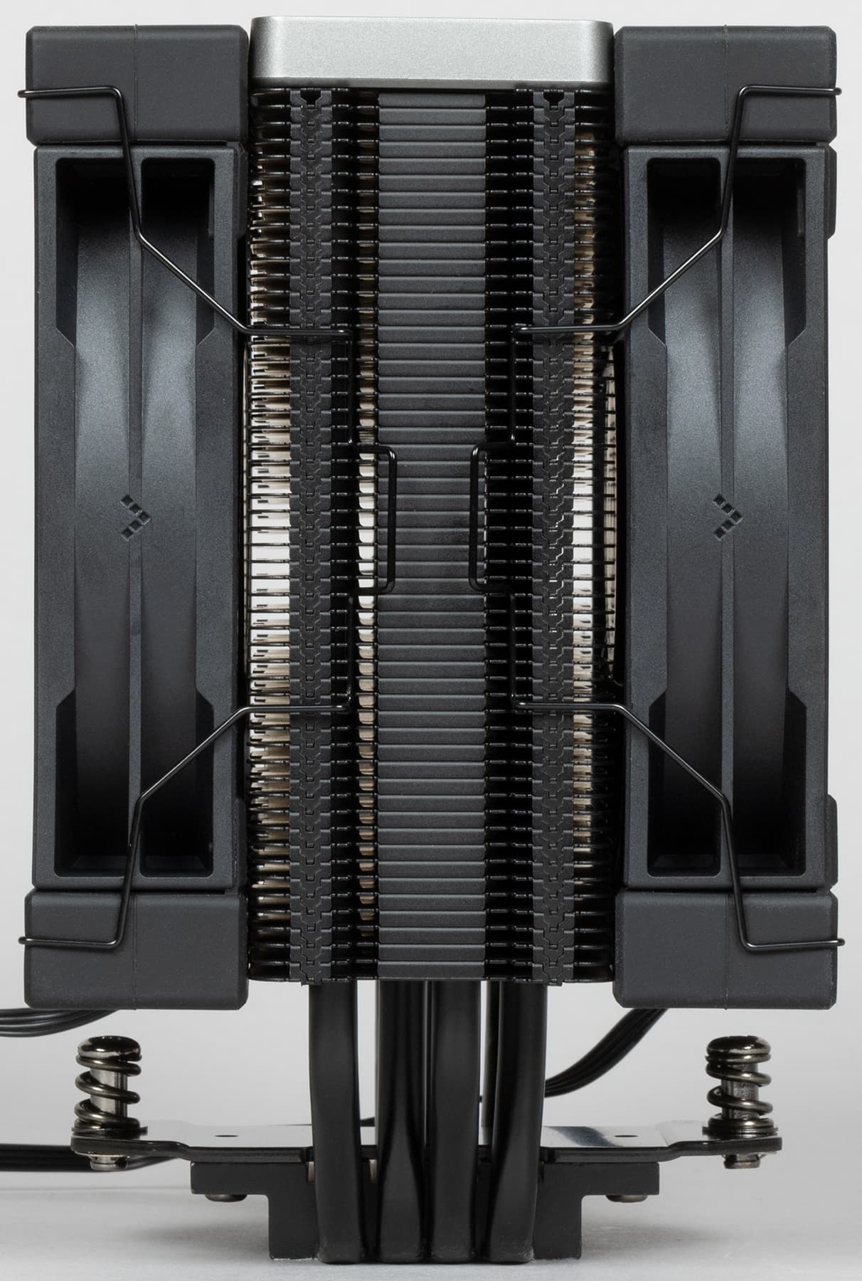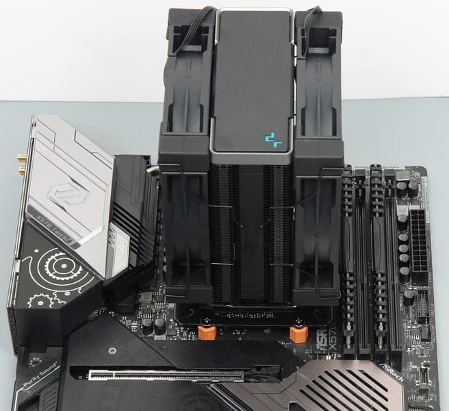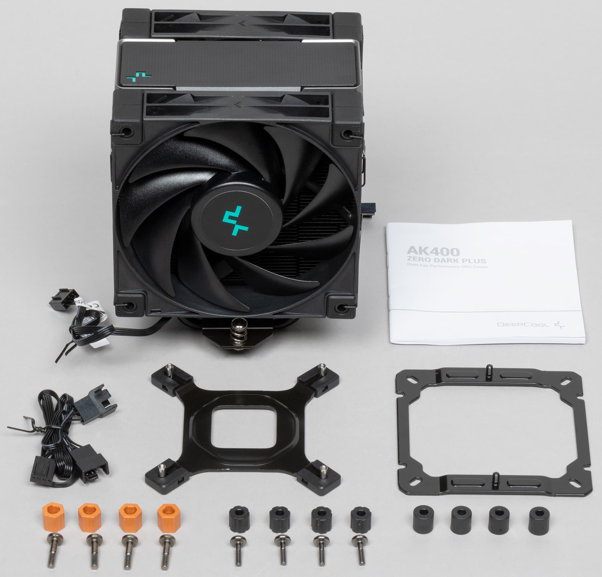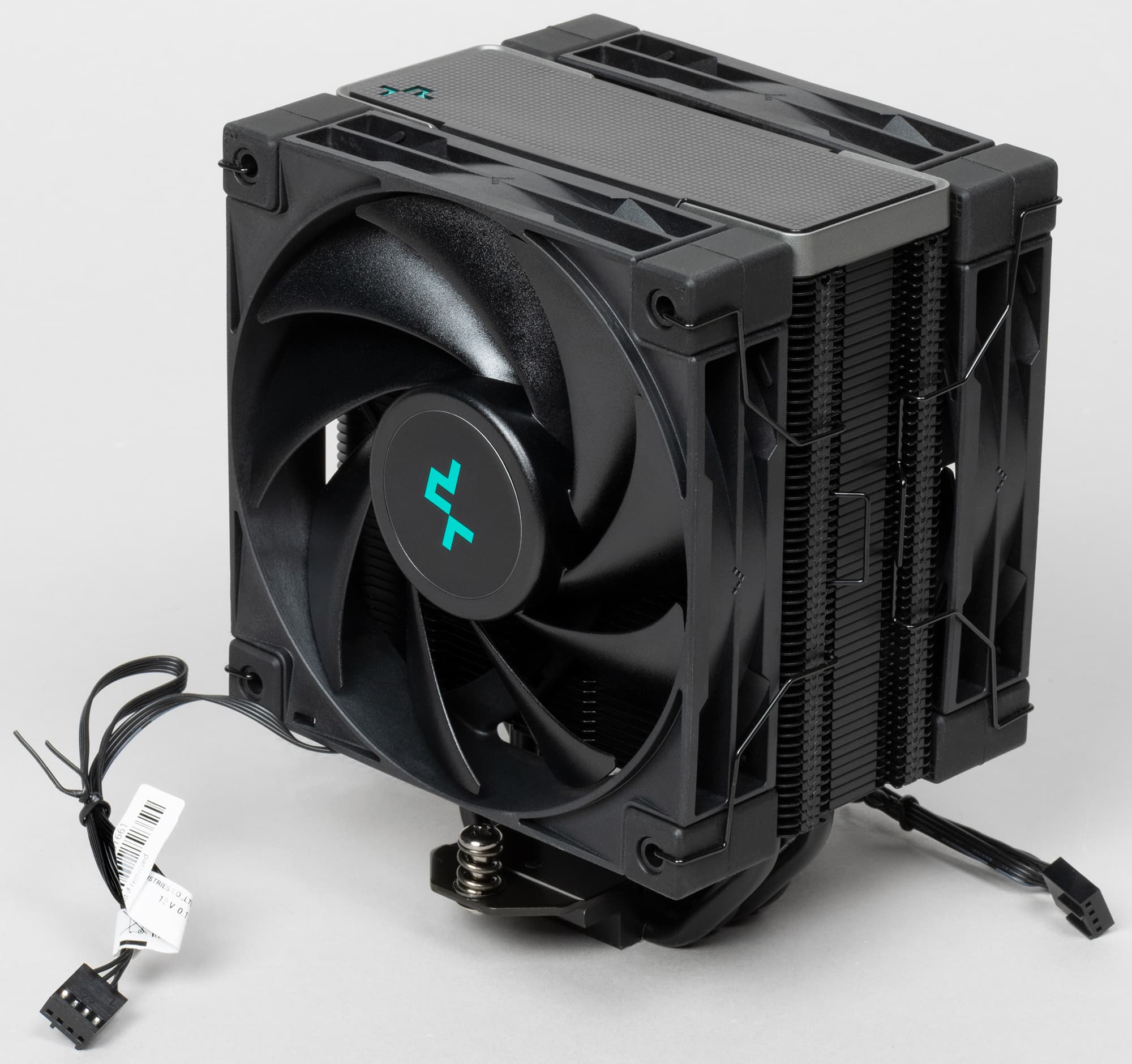 По сути этот процессорный охладитель представляет собой «заряженную версию» кулера DeepCool AK400, а именно добавлен второй вентилятор и радиатор покрашен в черный цвет, который за счет теплового излучения может улучшить теплоотдачу в сравнении с не крашенным блестящим радиатором.