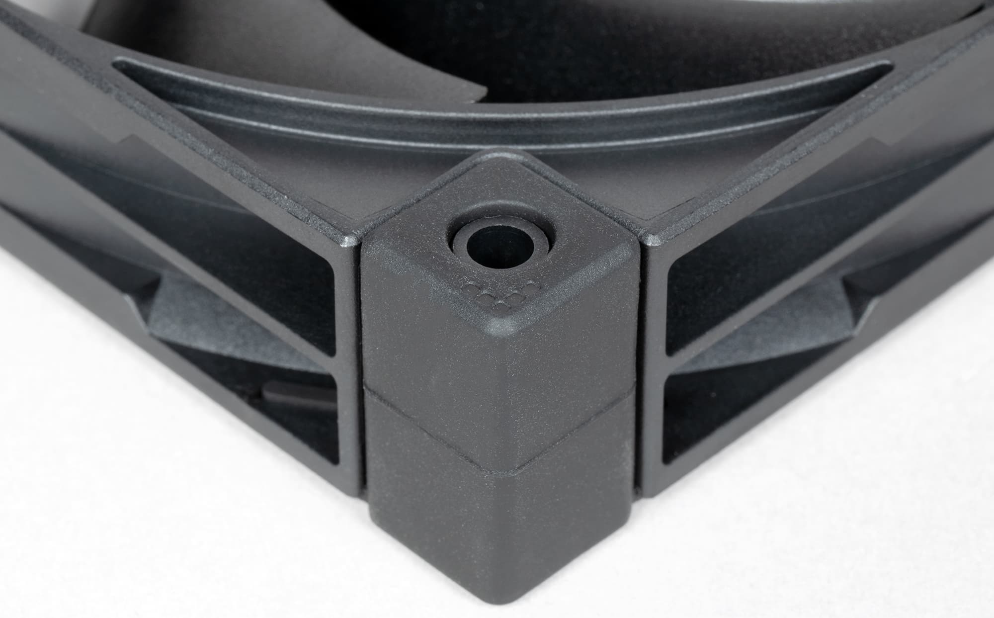 В несжатом состоянии они выступают примерно на 1 мм относительно плоскости рамки. По замыслу разработчиков, это должно обеспечивать виброразвязку вентилятора от места крепления. Однако если прикинуть соотношение массы вентилятора к жесткости накладок, то становится понятно, что резонансная частота конструкции получается очень высокой, то есть практически никакой виброразвязки быть не может. К тому же крепежные скобки фиксируются непосредственно за рамку вентилятора и за пластины радиатора, что не оставляет никакого шанса на хоть какую-то виброразвязку.