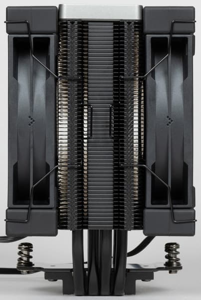 По ширине габариты вентилятора равны рабочей плоскости радиатора, а по высоте радиатор лишь немного меньше высоты вентилятора, поэтому практически весь воздушный поток от вентиляторов проходит через пластины.