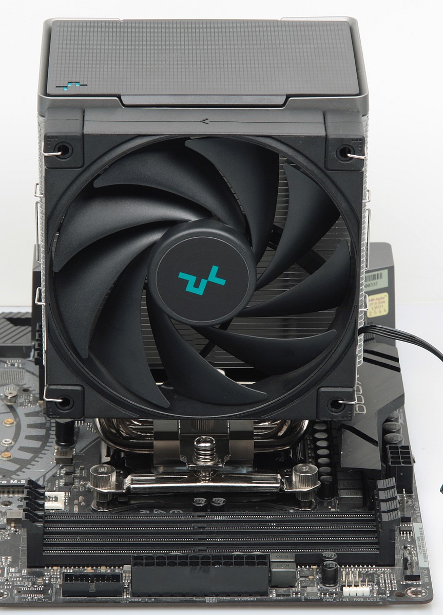 Со стороны вентилятора все разъемы для оперативной памяти остаются доступными для установки высоких модулей памяти. С другой стороны радиатора в первые два разъема можно установить модули высотой примерно до 50 мм, в следующие два — уже без ограничения высоты.