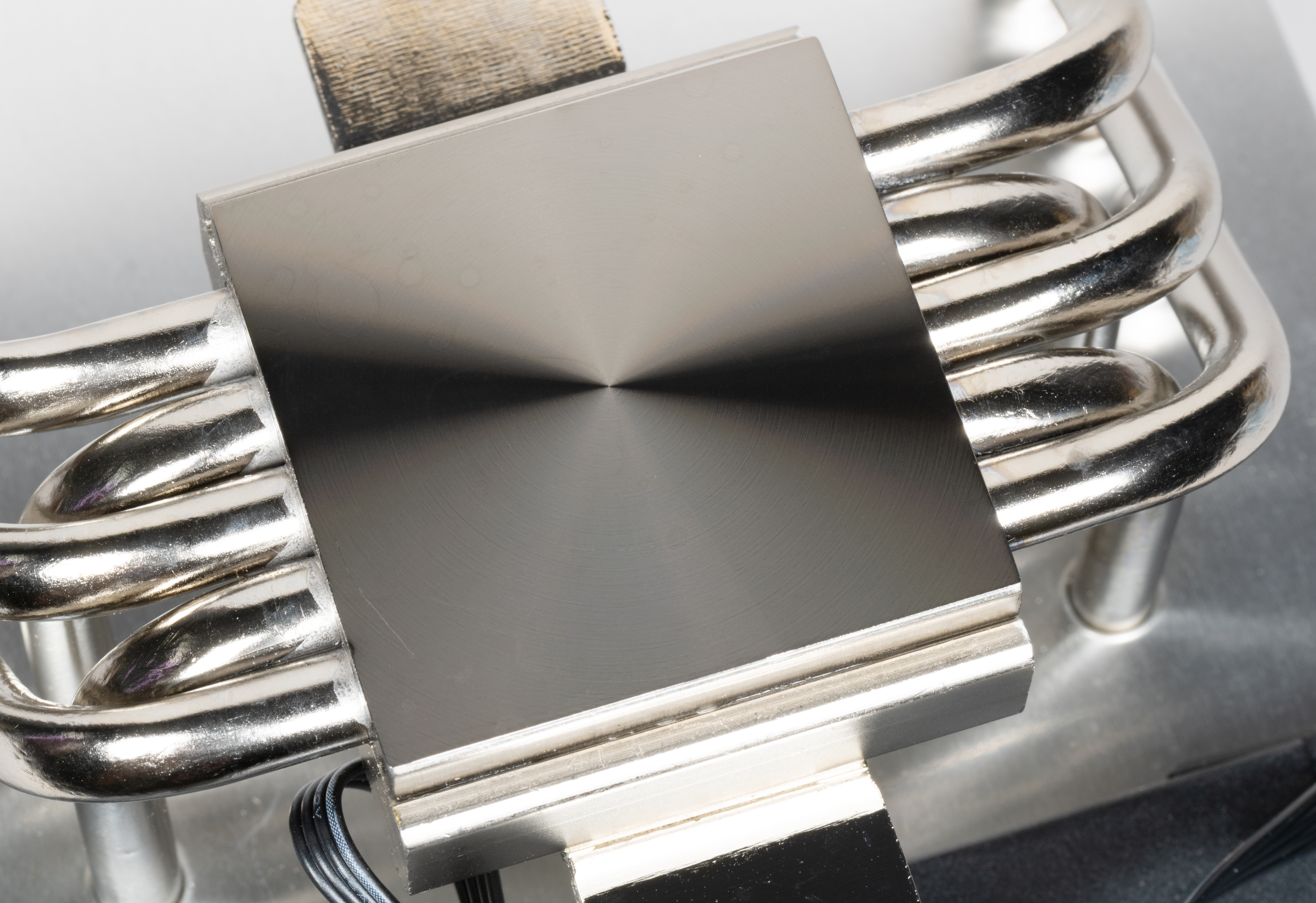 Кулер оснащен вынесенным радиатором, к которому тепло от теплосъемника передается по пяти тепловым трубкам диаметром 6 мм. Трубки и нижняя часть теплосъемника медные, никелированные. Верхняя часть теплосъемника изготовлена из алюминиевого сплава и также никелированная. Трубки к теплосъемнику припаяны. Подошва теплосъемника имеет очень мелкую концентрическую проточку и слегка отполирована. Поверхность подошвы немного выпуклая к центру с перепадом порядка 0,1-0,2 мм.