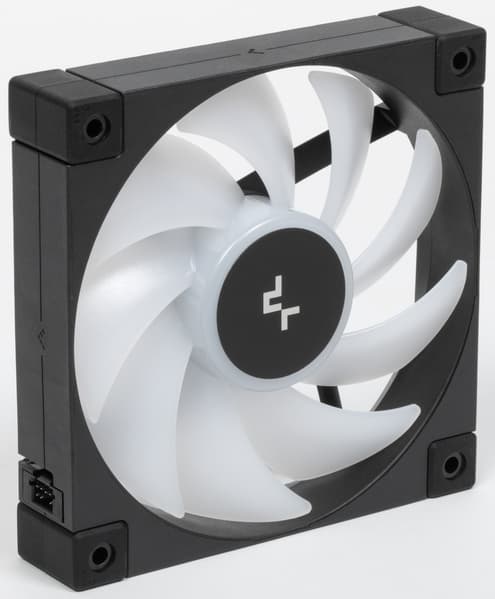 Крыльчатка вентилятора изготовлена из белого полупрозрачного пластика. На статоре вентилятора по окружности размещены несколько ARGB-светодиодов, которые подсвечивают крыльчатку изнутри.