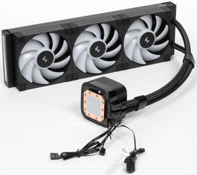 На основе системы жидкостного охлаждения DeepCool LD360 можно создать условно бесшумный компьютер (уровень шума 25 дБА и ниже), оснащенный процессором типа Intel Core i9-13900K, если потребление такого или подобного процессора под максимальной нагрузкой не будет превышать 170 Вт, а температура внутри корпуса не повысится выше 44 °C, и это с ограничением в 80 °C на максимальную температуру процессора. При снижении температуры охлаждающего воздуха, повышении порога температуры процессора (можно до 100 °C) или менее жестких требованиях к уровню шума пределы мощности можно увеличить. Из-за довольно высокого шума от помпы, который практически невозможно снизить, данная СЖО не подходит для сборки тихих ПК, но если требования к уровню шума невысокие, то ее хватит для охлаждения Intel Core i9-13900K в любых реальных сценариях нагрузки. Украшением внутреннего пространства системного блока послужит подсветка на помпе и вентиляторах, а дисплей на помпе будет полезен для быстрой оценки состояния системы. Отметим хорошее качество изготовления, оплетку шлангов и удобную организацию электрических соединений.
