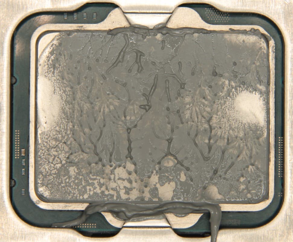 Забегая вперед, продемонстрируем распределение термопасты после завершения всех тестов. На процессоре Intel Core i9-13900K: