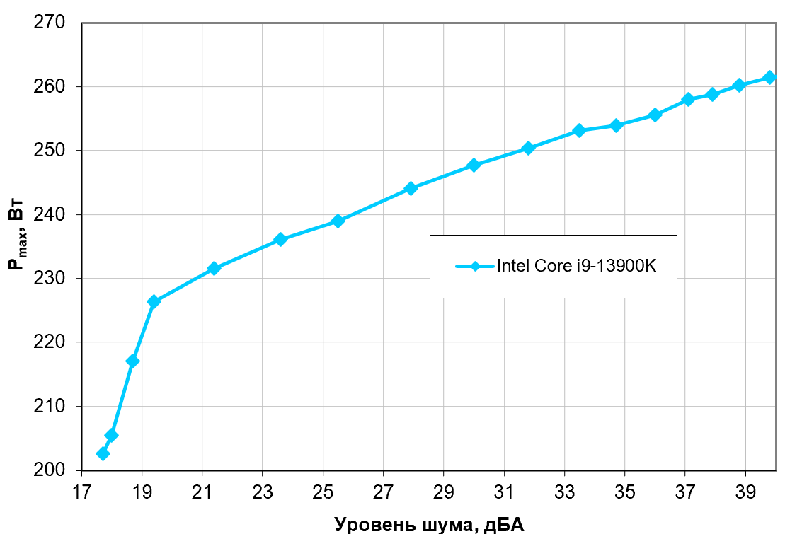 Приняв 25 дБА за критерий условной бесшумности, получим примерную максимальную мощность процессоров, соответствующих этому уровню. Это примерно 238 Вт для процессора Intel Core i9-13900K и ему подобных, что практически максимум для протестированных нами на данный момент СЖО. Причем (гримаса судьбы) такой рекорд поставлен изначально недорогой системой без каких-либо технических наворотов. Так бывает. И наоборот бывает — когда навороты не слишком помогают, хотя это уже реже.