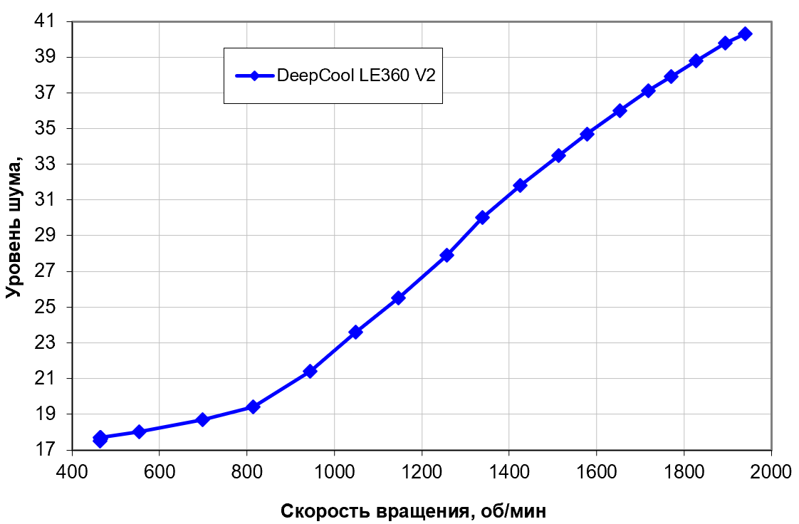 Уровень шума меняется в очень широком диапазоне. Зависит, конечно, от индивидуальных особенностей и других факторов, но где-то от 40 дБА и выше шум, с нашей точки зрения, очень высокий для настольной системы; от 35 до 40 дБА уровень шума относится к разряду терпимых; ниже 35 дБА шум от системы охлаждения не будет сильно выделяться на фоне типичных небесшумных компонентов ПК — корпусных вентиляторов, вентиляторов на блоке питания и на видеокарте, а также жестких дисков (при их наличии); а где-то ниже 25 дБА кулер можно назвать условно бесшумным. Фоновый уровень был равен 16,8 дБА (условное значение, которое показывает шумомер).