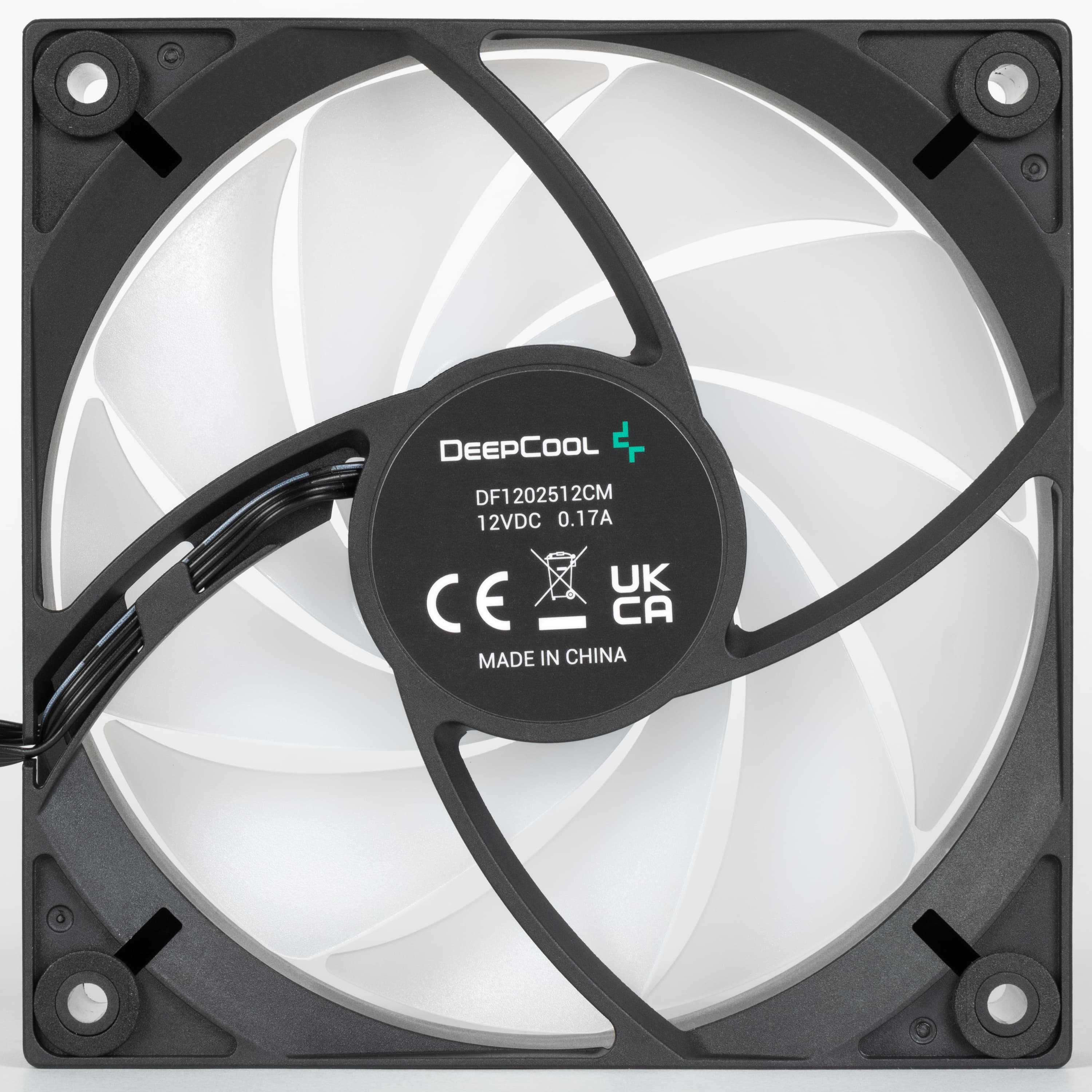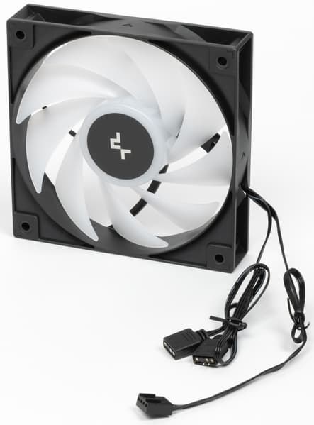 Рамка вентилятора изготовлена из прочного черного пластика. Если приглядеться, то сразу видно, что вентиляторы здесь совсем не такие, как в DeepCool LQ360.