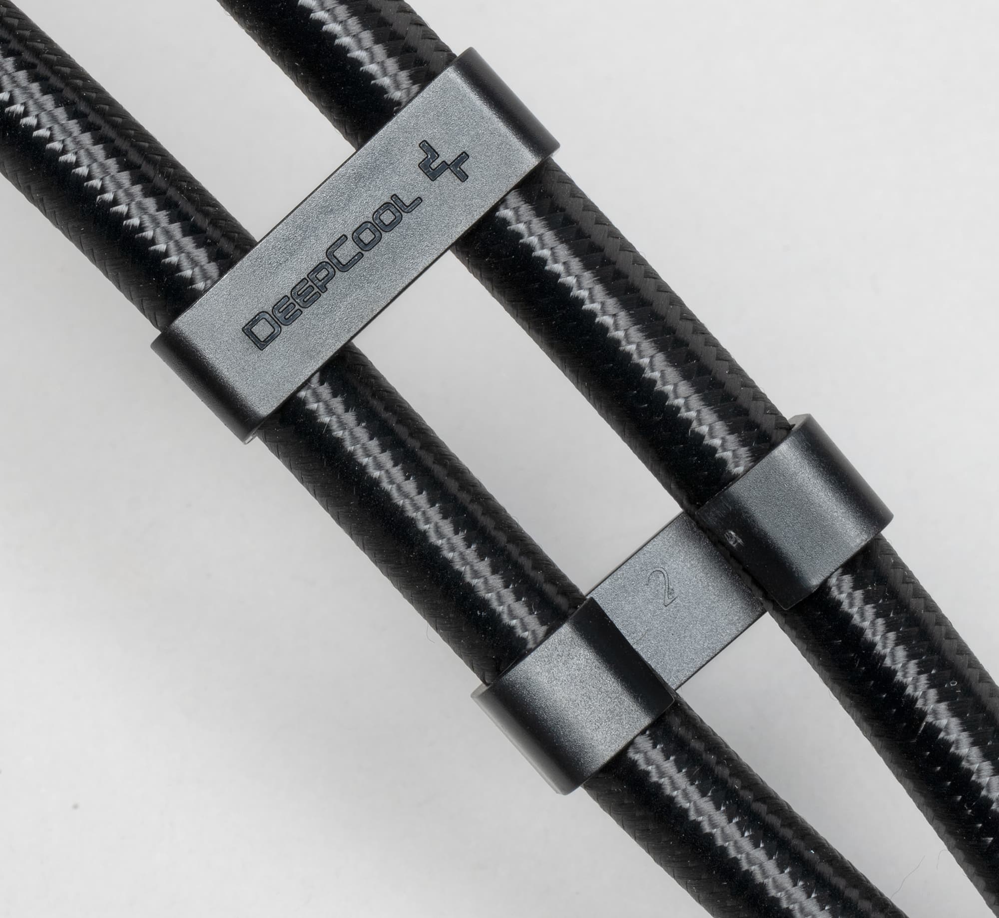 Шланги упругие, но относительно гибкие, они заключены в оплетку из скользкого пластика, внешний диаметр шлангов с оплеткой примерно 12 мм. Длина шлангов по гибкой части без учета обжимных гильз 38,5 см (довольно длинные). Г-образные фитинги на входе в помпу поворачиваются, что облегчает установку системы. В комплект поставки входят две пластиковый скобки, с помощью которых можно зафиксировать шланги и придать системе более опрятный вид.