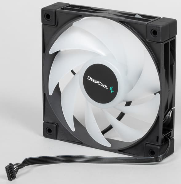 Крыльчатка вентилятора изготовлена из белого полупрозрачного пластика. На статоре вентилятора по окружности размещены шесть ARGB-светодиодов, которые подсвечивают крыльчатку изнутри.