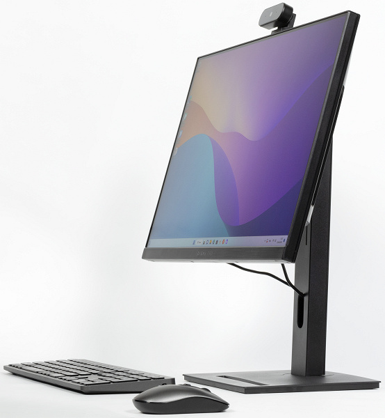 На подставке здесь зато не экономили — что оказалось приятным сюрпризом после топовой модели Digma Pro AiO 27i. В последней, напомним, регулировался только наклон, а здесь можно менять и высоту «монитора» либо повернуть его на 90 градусов в портретный режим. Также штатной «ногой» можно вовсе не пользоваться по причине наличия VESA-крепления с шагом 75 мм.