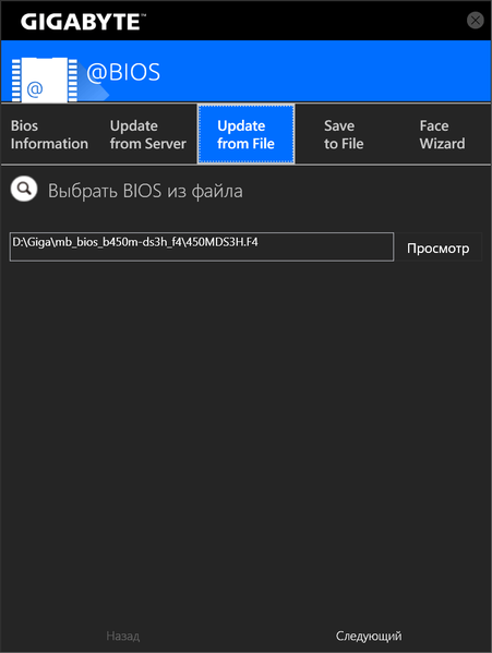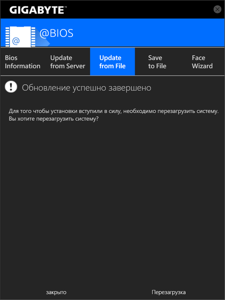 Пришлось скачать последнюю прошивку с сайта Gigabyte вручную и установить ее с помощью этой же утилиты @BIOS.