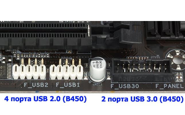 Чипсет B450 способен реализовать до 10 портов USB всех типов, но при этом не больше 2 USB 3.1. Кроме того, контроллер USB 3.1 на 4 порта есть в процессоре.
