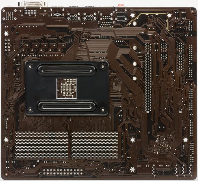 Следует отметить недостаток конструктива платы: при монтаже материнки в корпус угол, где расположен 24-контактный разъем питания и слоты DIMM, окажется подвешенным в воздухе, ибо там нет монтажного отверстия. Поэтому перед тем, как вставлять модули памяти или втыкать 24-контактный «хвост» питания, следует подложить или подставить что-нибудь под угол, чтобы материнская плата не прогнулась (и не треснула). Также возможно, что в корпусе на месте того самого угла материнки окажется выпрессованный подъем для крепежа, и плата может касаться его контактами на оборотной стороне — в таком случае лучше прикрепить в месте касания кусочек изоленты или подложить что-нибудь изолирующее под угол.