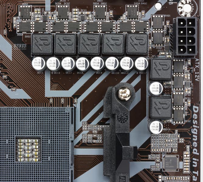 Система питания процессора организована по схеме 4 (ядра) + 3 (блоки ввода-вывода) фазы. Управляет схемой ШИМ-контроллер Intersil ISL95712.