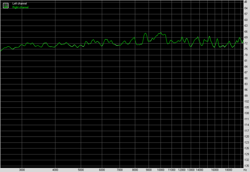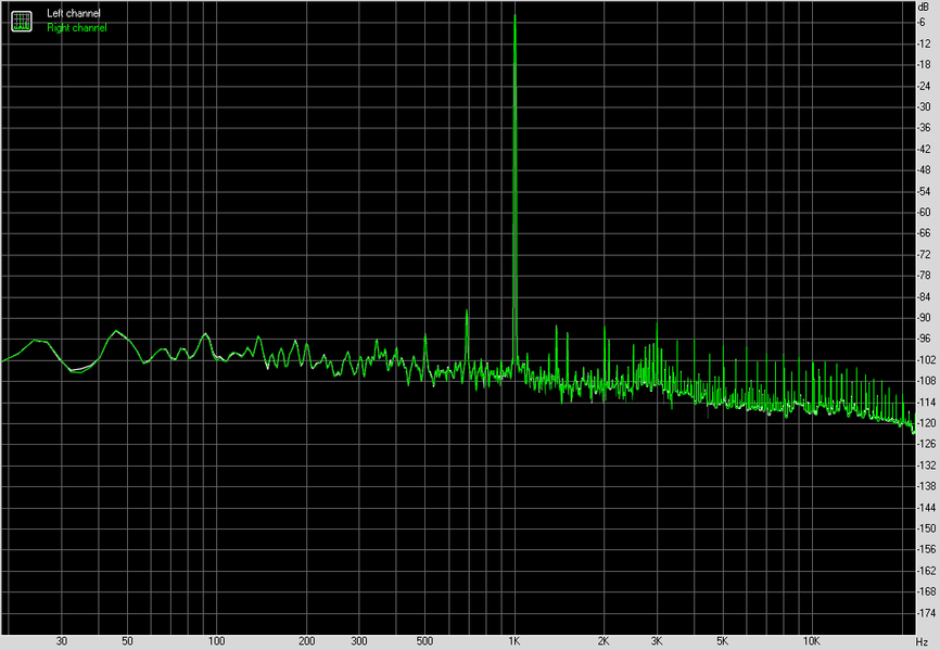 Для тестирования выходного звукового тракта, предназначенного для подключения наушников или внешней акустики, мы использовали внешнюю звуковую карту Creative E-MU 0202 USB в сочетании с утилитой RightMark Audio Analyzer 6.4.5. Тестирование проводилось для режима стерео, 24-бит/44,1 кГц. По результатам тестирования аудиотракт на плате получил оценку «Хорошо».