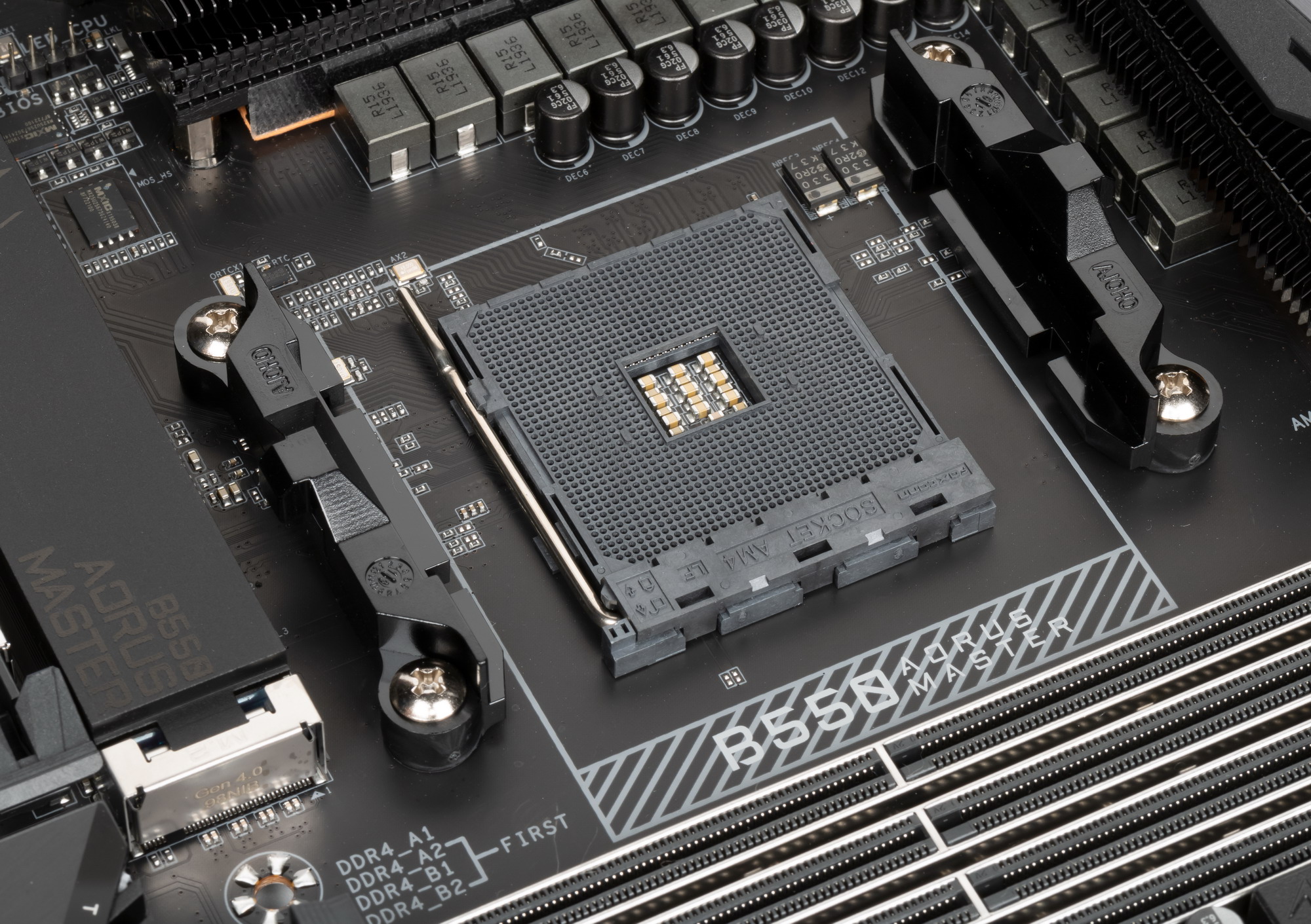 Еще раз надо напомнить, что Gigabyte B550 Aorus Master поддерживает процессоры AMD Ryzen 3-го поколения, выполненные под разъем (сокет) AM4. Но, как показала практика, процессоры предыдущих поколений также поддерживаются.