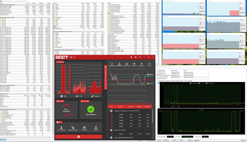 Запускаем все в режиме по умолчанию. Затем нагружаем тестами от AIDA, и OCCT.