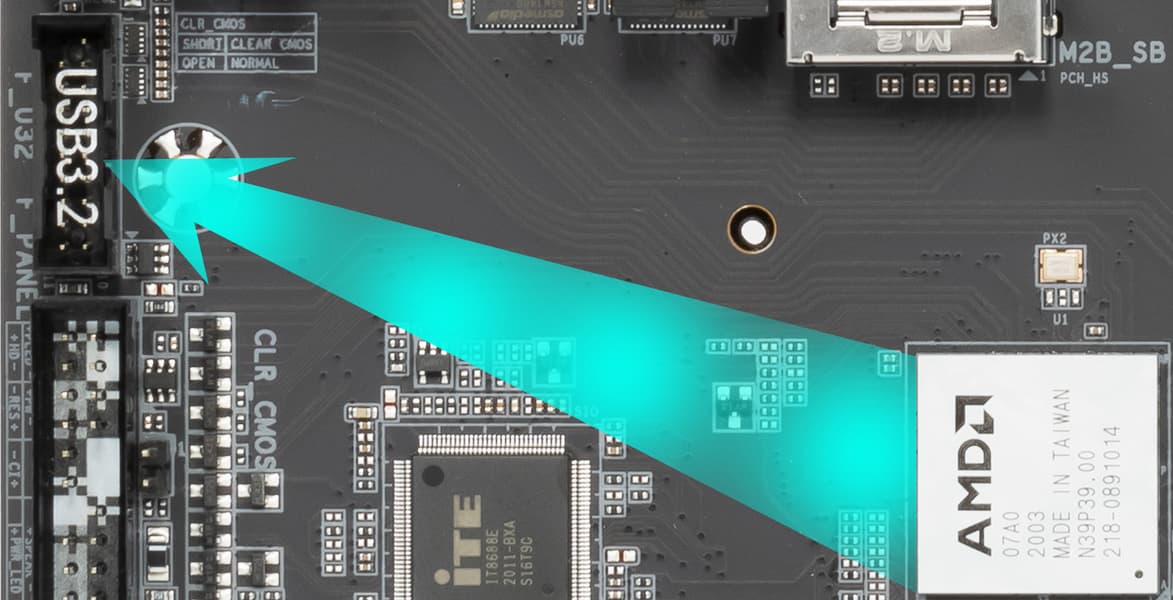 Повторим: чипсет B550 способен реализовать максимально: 2 порта USB 3.2 Gen2, 2 порта USB 3.2 Gen1, 6 портов USB 2.0. Процессор Ryzen 3-го поколения способен реализовать до 4 портов USB 3.2 Gen2.