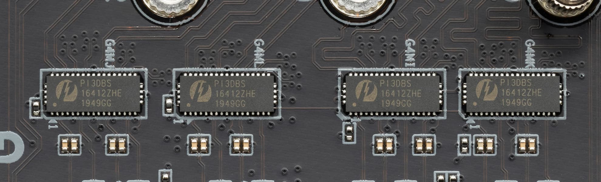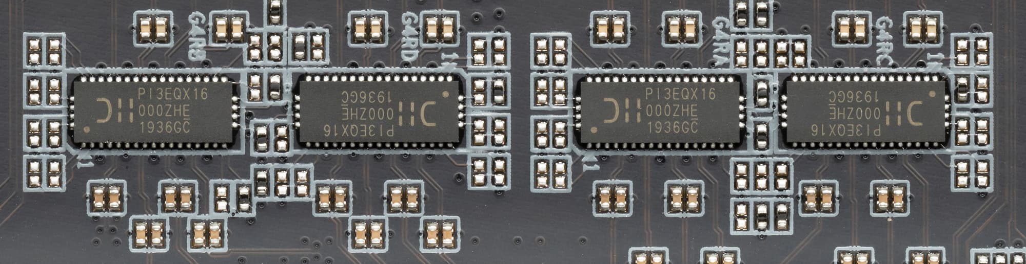 У данной платы имеется распределение линий PCIe между слотами, поэтому востребованы мультиплексоры PI3DBS от Pericom (Diodes Corp).