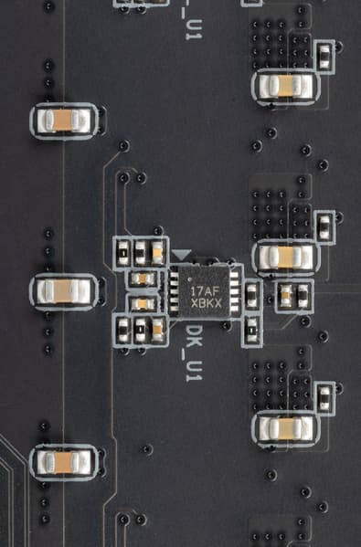 Что касается модулей оперативной памяти, то здесь все проще: реализована однофазная схема c контроллером RT8120 от Richtek.