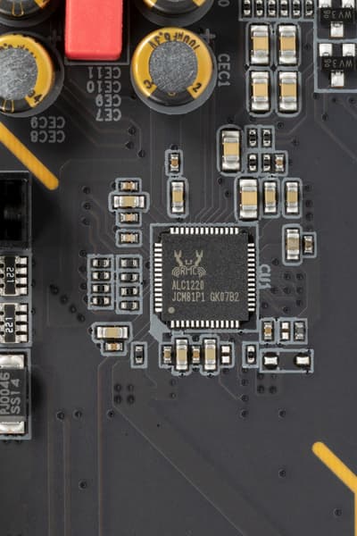 Как и во всех современных материнских платах звуком заведует аудиокодек Realtek ALC1220. Он обеспечивает вывод звука по схемам до 7.1.