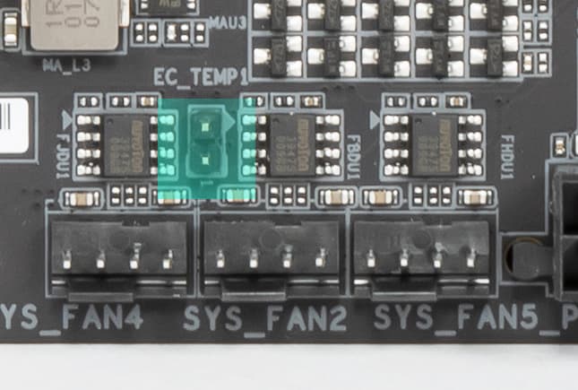 Через ПО или BIOS контролируется все 8 гнезд для подключения воздушных вентиляторов или помп: они могут управляться как через ШИМ, так и банальным изменением напряжения/тока.