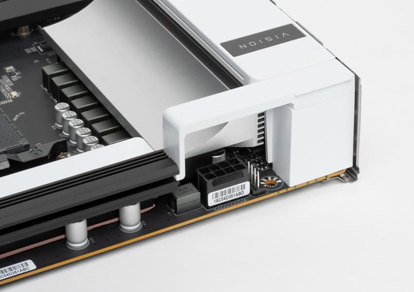 Элемент дизайна прикрывает разъемы EPS12V и для вентилятора, а также отверстие для крепления матплаты, однако он легко снимается.