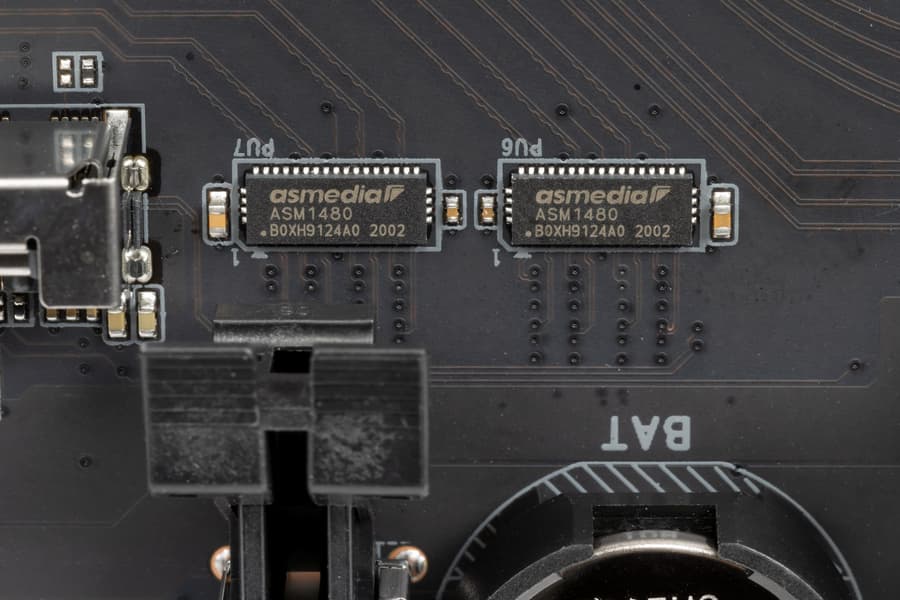 Также необходимо переключение слота PCIe x4 и порта M2B_SB, для этих целей используются мультиплексоры ASM1480 от ASMedia.
