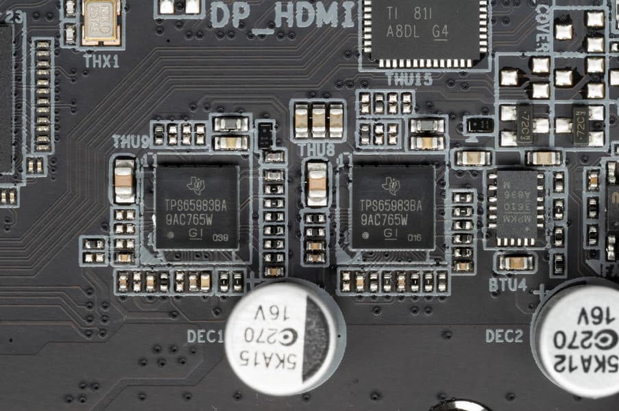 Для реализации именно USB 3.2 Gen2 имеются два контроллера TPS65983B от Texas Instruments.