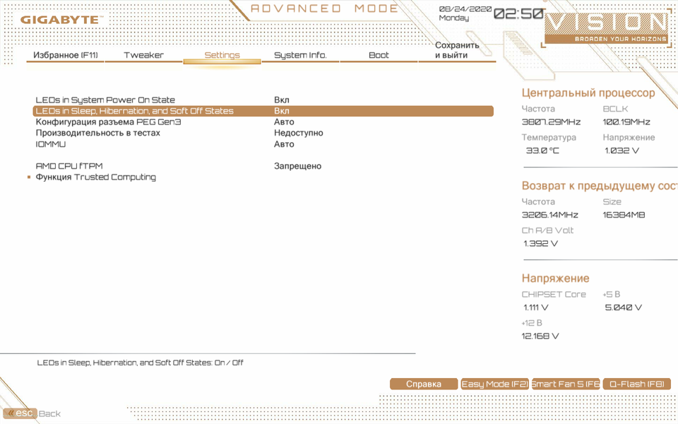 Обычно игровые платы Gigabyte оснащаются красивой подсветкой. Но вот в случае решений для «академиков конструкторских наук» подсветка запрещается во избежание ухудшения самовосприятия внутреннего мира. Так что в данном случае есть только 4 разъема для подключения внешней подсветки, и всем этим можно управлять через программу RGB Fusion.