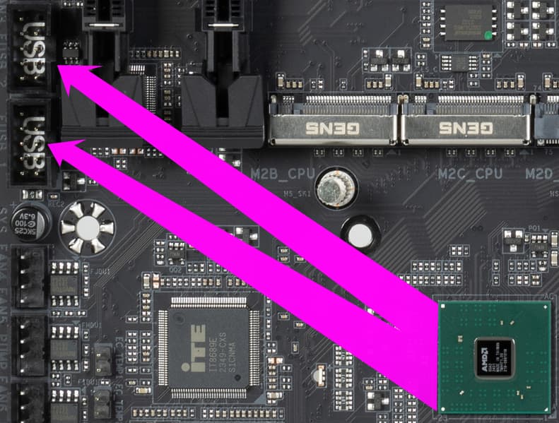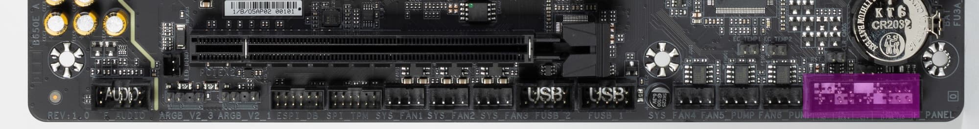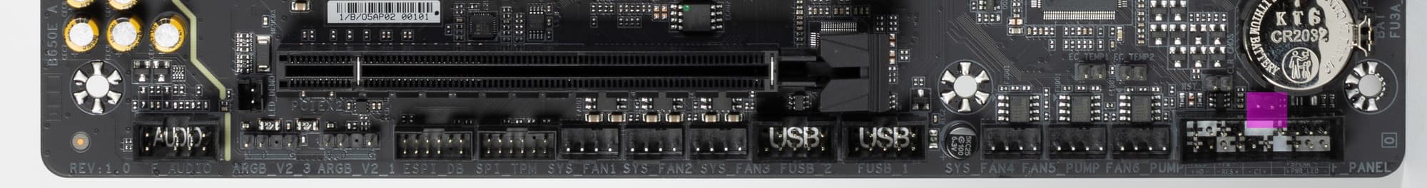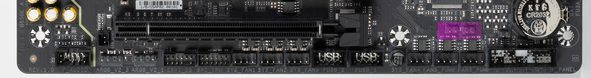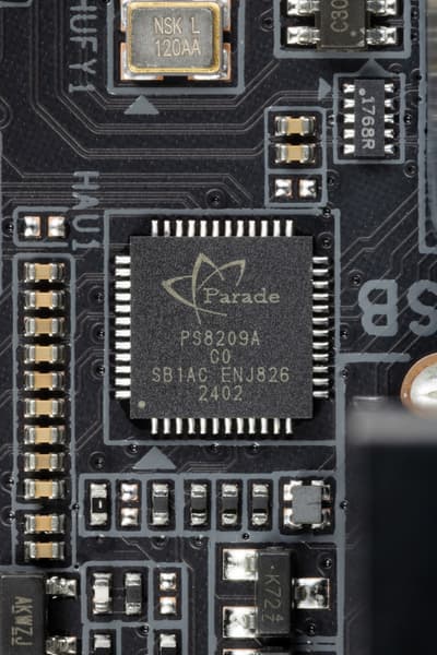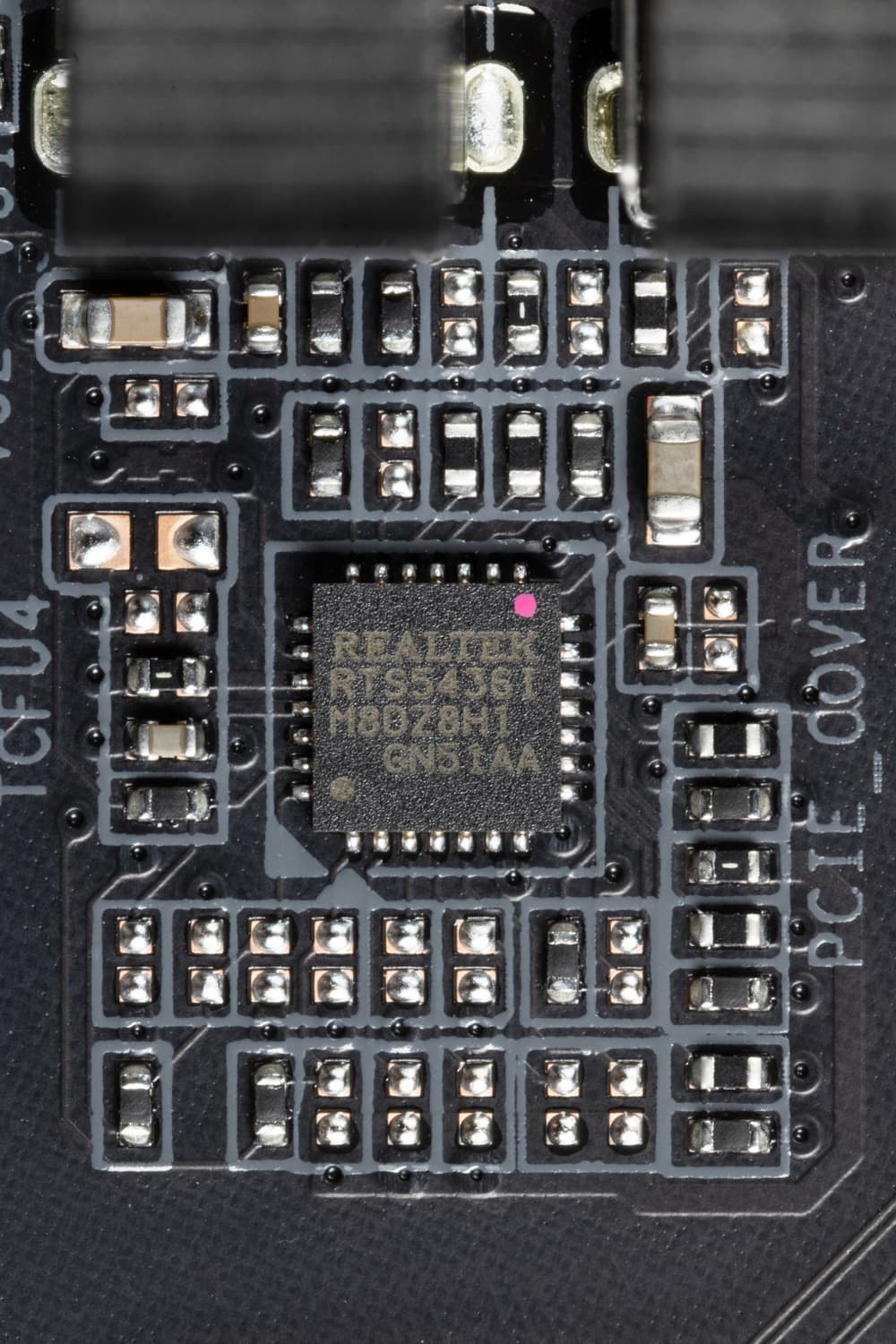 В процессорах Ryzen встроен контроллер High Definition Audio (HDA), связь с аудиокодеком идет путем эмуляции PCI шины. А также контроллер USB 2.0 Genesys Logic GL850G использует линию USB 2.0 от CPU, а Realtek RTS5411 использует 1 линию USB 3.2 Gen1 от B650E (детали ниже в разделе USB портов).