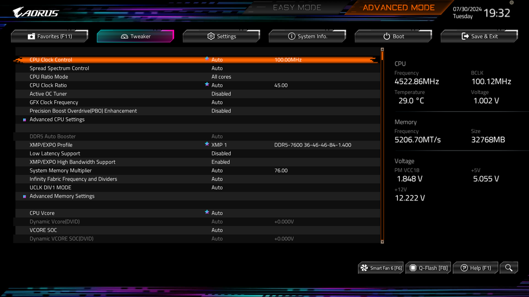 Разумеется, Gigabyte B650E Aorus Pro X USB4 предлагает некоторые возможности для любителей разгона.