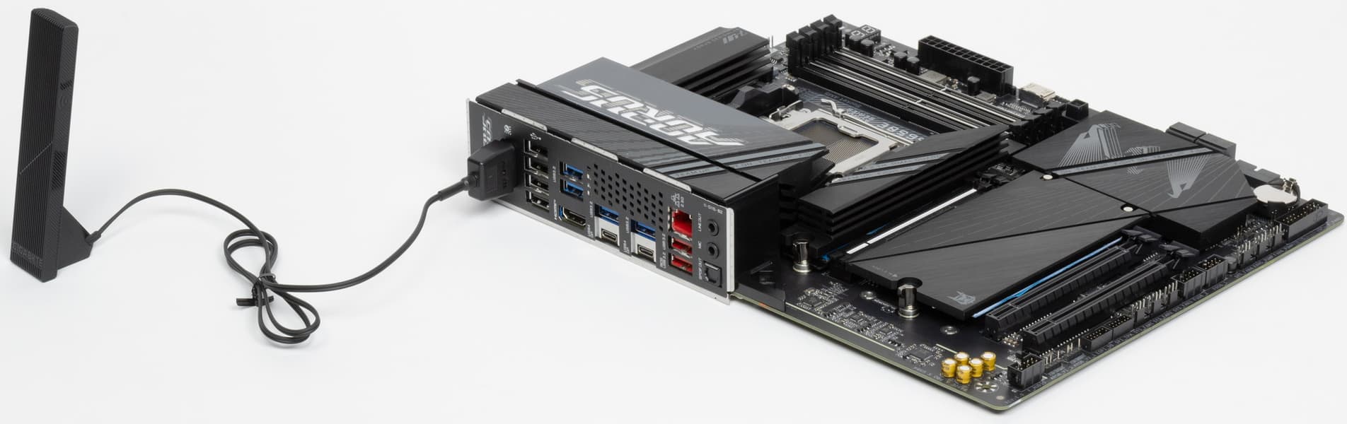 У Gigabyte B650E Aorus Pro X USB4 имеется 19 портов USB разных видов, включая два самых быстрых на сегодня порта USB4 и один уже не самый быстрый USB 3.2 Gen2×2. Оба порта USB4 обеспечивают скорость передачи данных до 40 ГБ/с и имеют поддержку вывода изображения в формате DP.