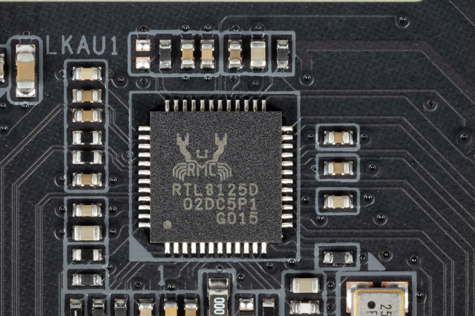 Материнская плата оснащена средствами связи хорошо. Имеется скоростной Ethernet-контроллер: Realtek RTL8125D, способный выдавать до 2,5 Гбит/с.