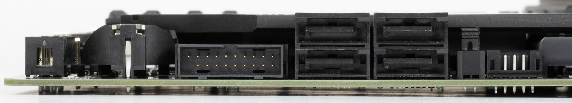12 линий PCIe (8 версии 4.0 и 4 версии 3.0) оказались занятыми, включая 4 порта SATA.