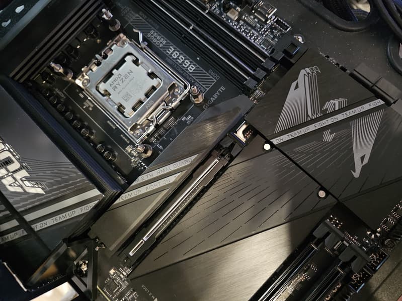 Все потенциально сильно греющиеся элементы имеют свои собственные радиаторы. Чипсет B650E имеет весьма широкий радиатор, он прекрасно справляется с охлаждением без вентилятора.