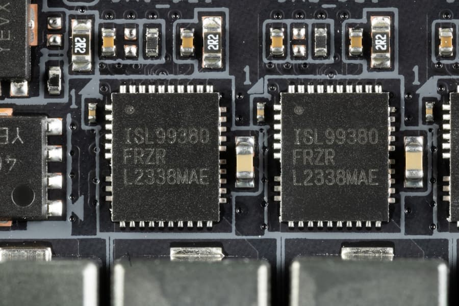 Каждая фаза VCore и SoC имеет по транзисторной сборке ISL99380 от Renesas (до 80А).