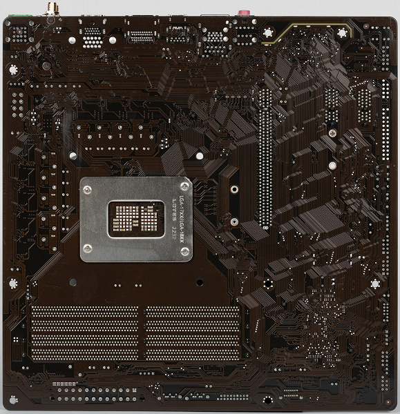 «Заглушка» на заднюю панель с разъемами идет отдельно в комплекте, не установлена на самой плате.