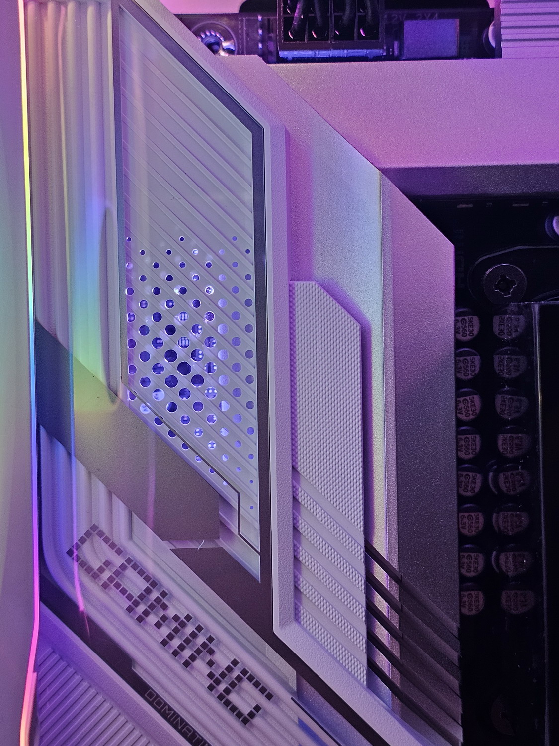 Радиатор VRM, идущий вдоль заднего блока портов, имеет кожух, оснащенный подсветкой.