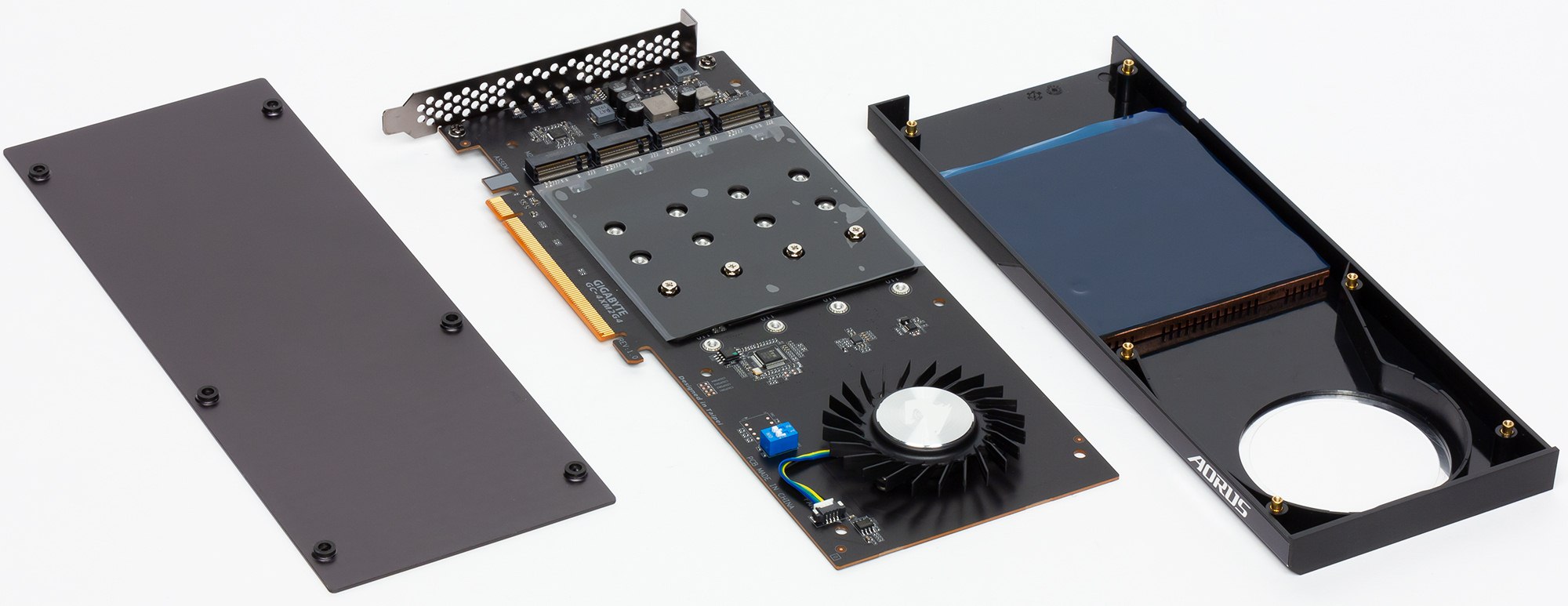 с поставкой особой карты (она уже поддерживает интерфейс PCI-E 4.0), способной вместить на себе аж 4 модуля форм-фактора M.2.