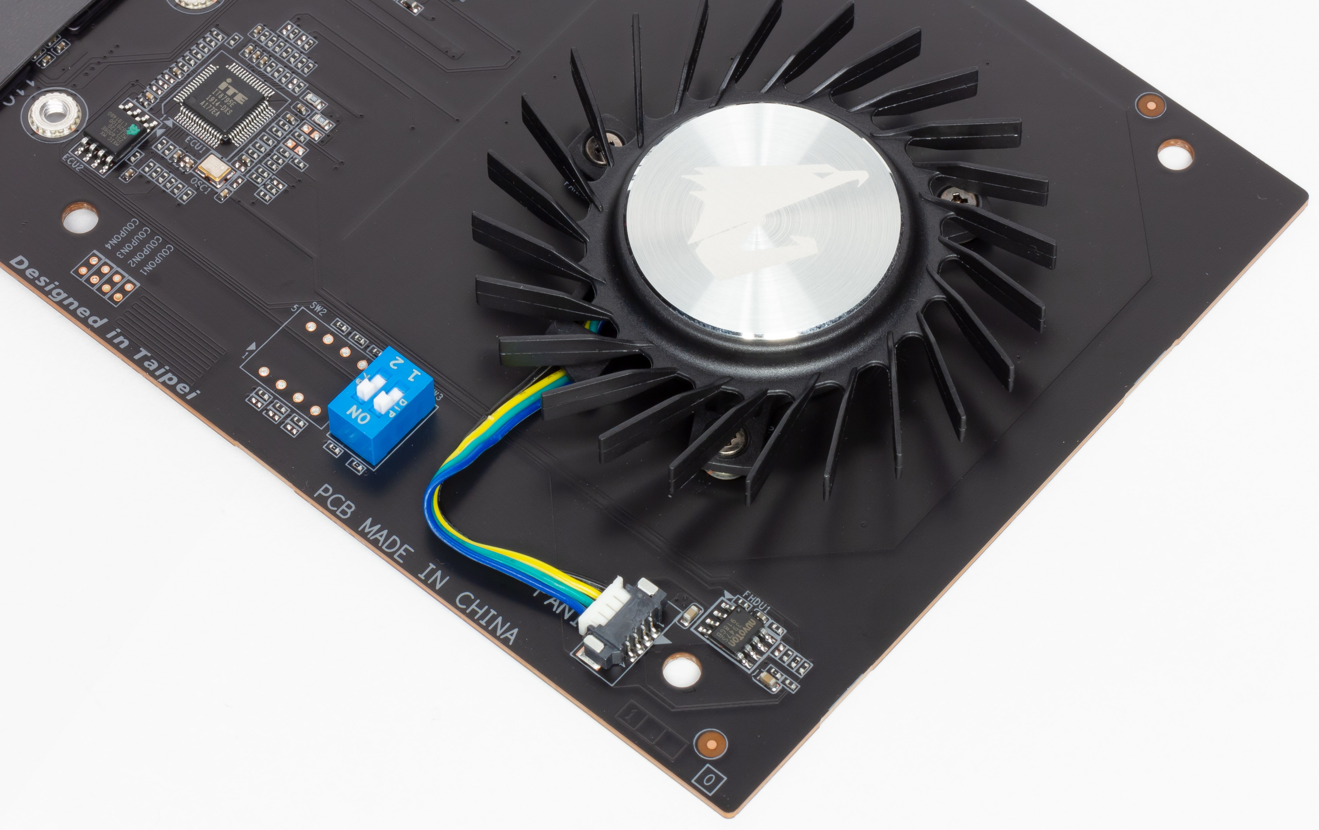 Все потенциально сильно греющиеся элементы имеют свои собственные радиаторы. Как известно, самым горячим звеном в наборе AMD TRX40 является сам чипсет, поэтому многие производители вынуждены вспомнить про вентиляторы для такого рода микросхем.