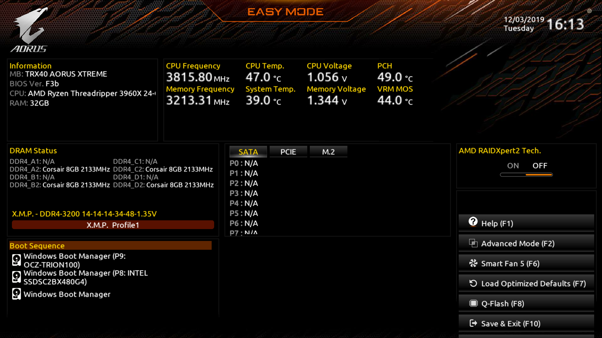 Нагрев остальных элементов материнской платы был в норме (от 44 до 67 °C), кроме чипсета TRX40, который также мог нагреваться до 95 °C, при этом его вентилятор всегда работал на частотах около 2000 оборотов в минуту (шум ощущался, но по минимуму).