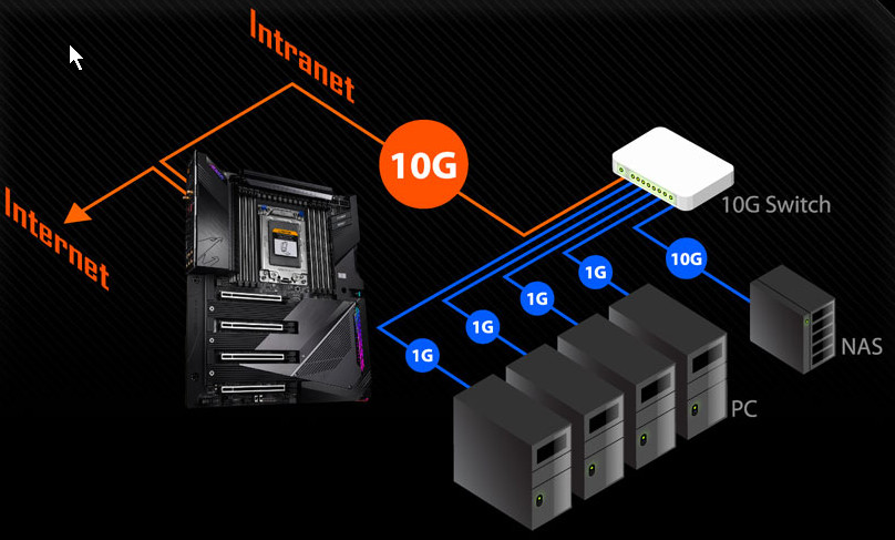 | Сетевые контроллеры | 1 × Intel X550-AT2 Dual Ethernet 10 Гбит/с 1 × Intel Dual Band Wireless AX200NGW/CNVi (Wi-Fi 802.11a/b/g/n/ac/ax (2,4/5 ГГц) + Bluetooth 5.0) |