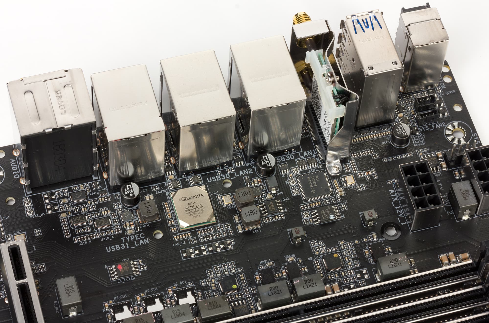 Более необычный момент: на плате имеется и 10-гигабитный сетевой контроллер Aquantia AQC107.